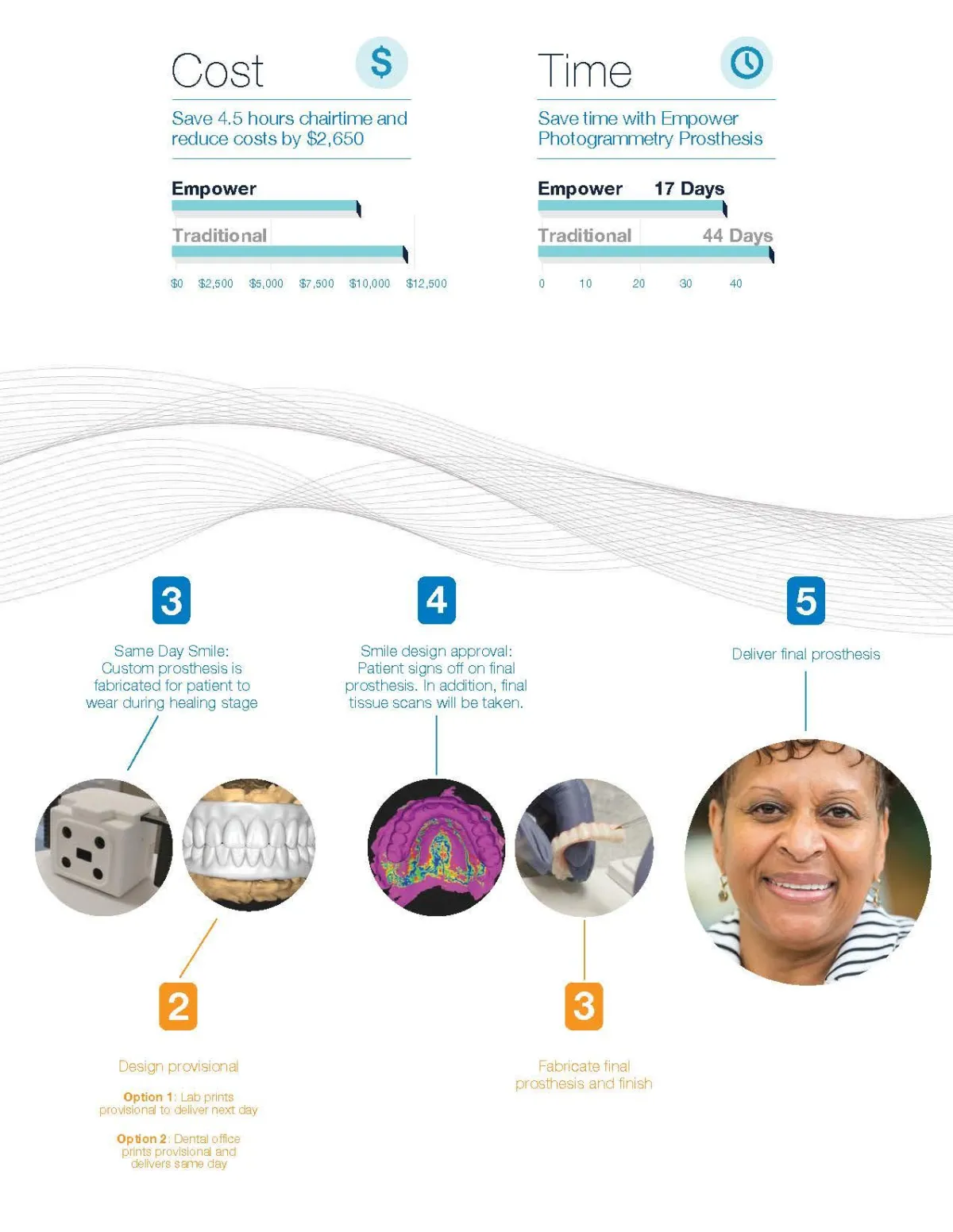 Key Differentiator: Our key differentiator is the quality of our full arch designs and our turnaround times of 30 minutes or less for a single arch and 45 minutes or less for a double arch on day of surgery design. Another key differentiator is that we currently have 30 designers on staff and we are continuing to expand so when you work with us doctors are one on one with our designer through their entire surgery and get their undivided attention and support. Lastly, we offer flexible payment options for our customers allowing them to bundle their arches to unlock lower price points and know their fixed costs for each arch, there are never any surprise or additional fees with our products. We also have a team of 3 sales reps and two lab technicians that offer in office free surgery demos and chairside assistance.